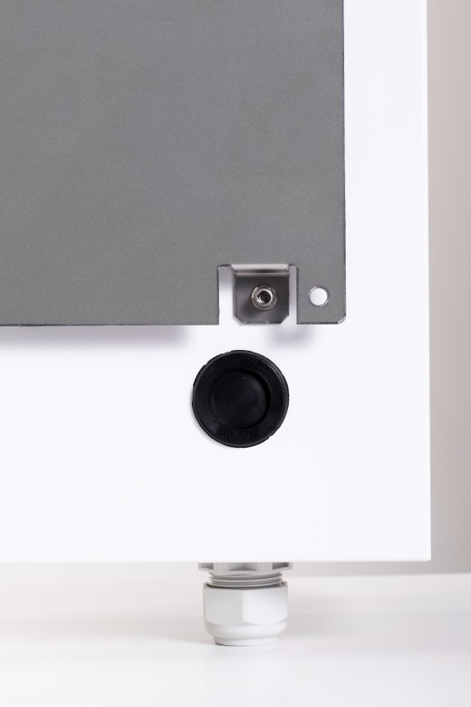 Securing chains from the roof of the building including a circuit breaker and a 4P switch to manually switch the backup - either the whole house or selected parts of it.