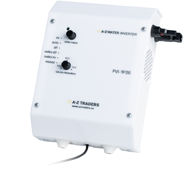 Water heating from photovoltaics AZ WATER INVERTER (e.g. for NZÚ light) offers efficient direct powering of the boiler from the sun. The optimal economic and technical solution for powering the boiler directly from photovoltaics without the need for large, heavy and expensive technology. According to the set mode, the device directly feeds the boiler from the production of solar panels without unnecessary losses.