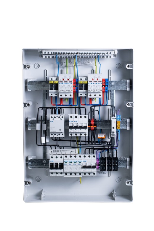 An indisputable advantage is minimal intervention in the customer's switchboard - Smartmeter (inverter measurement), the common breakdown point and all fuses are part of this switchboard. It is enough to make a loop between hl. switchgear and technology placement. The switchboard is also equipped with an emergency disconnection of the HDO inverter (N0%). The R-FVE-A40-1 switchgear is designed for the main circuit breaker in the column with a maximum of 40 A. It also includes DC fuse disconnectors and overvoltage arresters.